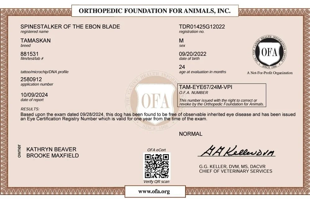 OFA is not affiliated with Wolfdogs of the Ebon Blade or Tamaskans of the Ebon Blade.