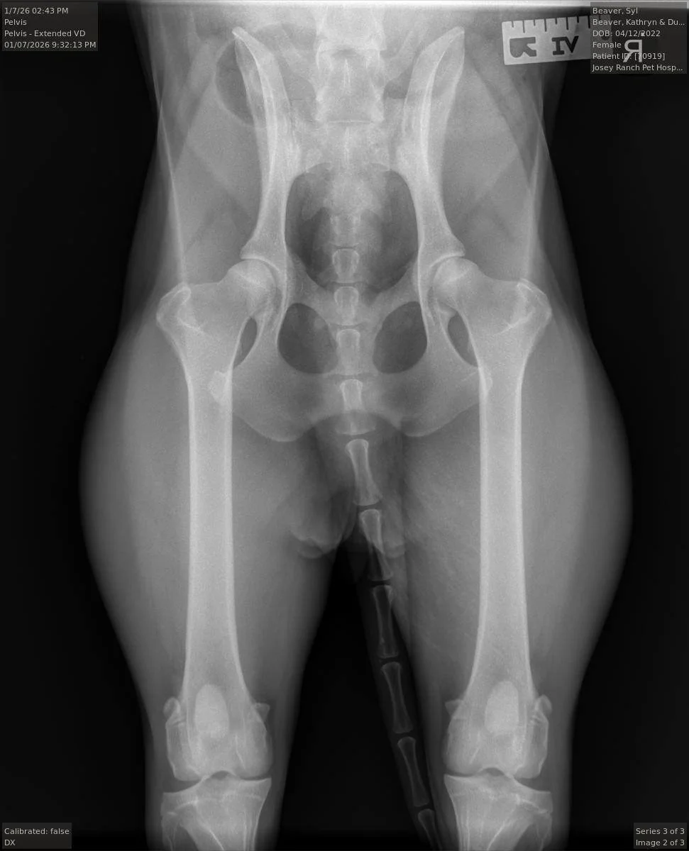 Syl’s hips x-ray, taken at 2 years and 9 months old, intact.